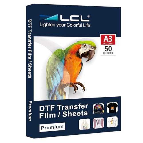 LCL DTF överföringsfilmpapper – A3 (29,7 cm x 42 cm) 50 DTF-papper med smart tryckdyna för all sublimering och DTF-skrivare, DTF-film, uppgraderad premium direkt till film för alla tyger