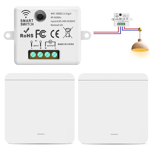 Vegena 2 stycken radioljusbrytare, trådlösa strömbrytare, trådlös ljusbrytare, radioomkopplare för lampa 433 MHz Rf säkerhetsmottagare med mottagare