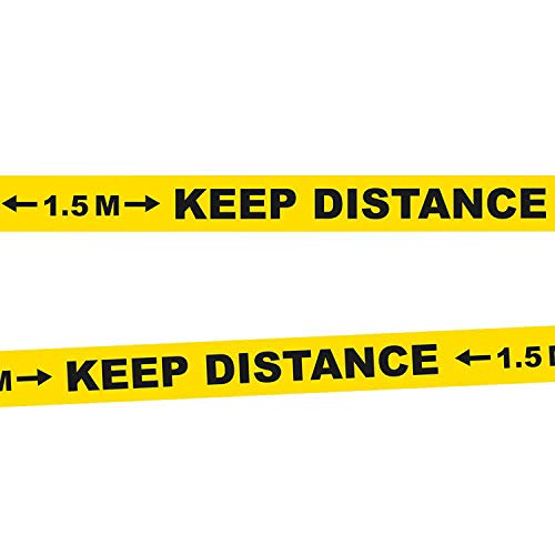 Boland 44622 – Avspärrningsband Keep Distance 1,5 m, storlek 15 m x 7,5 cm, tillverkad av plast, banderoll, fladdrem, krans, varningstejp, dekoration, födelsedag, fest, karneval, temafest