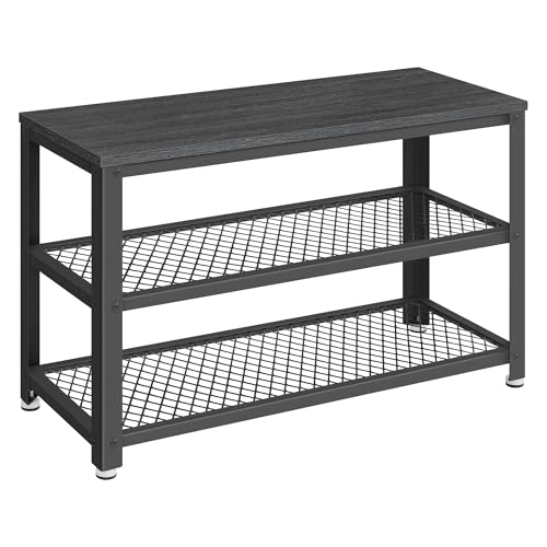 VASAGLE Skobänk, Skoställ med 2 trådhyllor, Skoförvaring, 30 x 100 x 45 cm, för entré, hall, vardagsrum, metallram, gråsvart LBS078K01