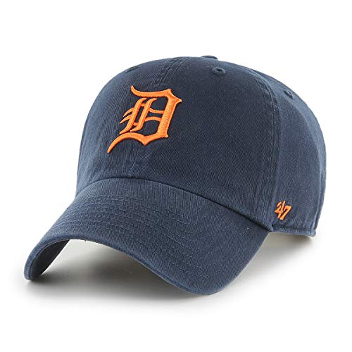47 MLB Detroit Tigers Clean Up unisex basebollkeps, justerbar rem och spänne, orange logotyp, färg vintage marinblå, Marinblått Xsp, en storlek