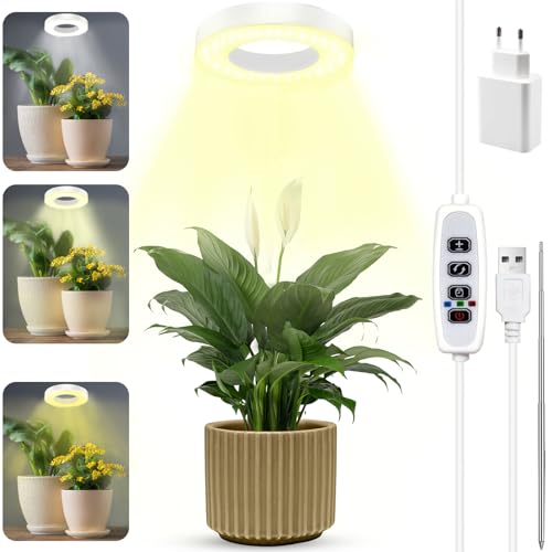GUHAOOL LED växtlampa, LED fullspektrum växtlampa, höjdjusterbar 48 LED växtljus med timer 3/9/12 timmar med USB-adapter, 3 ljuslägen och 9 ljusstyrkor för inomhusväxter (vit)