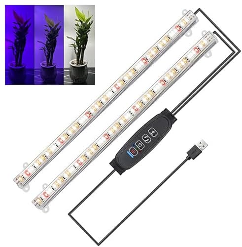 Craftsboys LED växtljusremsor fullt spektrum för inomhusväxter med automatisk på/av-timer, 48 lysdioder/10 dimbara nivåer, solliknande växtlampa för hydroponik suckulent (fullt spektrum, två stänger)
