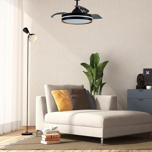 Eden pulse Svart fläkt i mörkt trä med tre utfällbara blad 109D 3 temperaturer, fjärrkontroll, minne, timer, 40/50 x 48/109 cm
