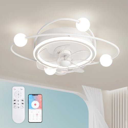 Modern Takfläkt med Belysning,58CM Dimbar LED-taklampa med Fläkt,48W Timer Takfläkt med Lampa för Vardagsrum Sovrum Matsal (Vit)