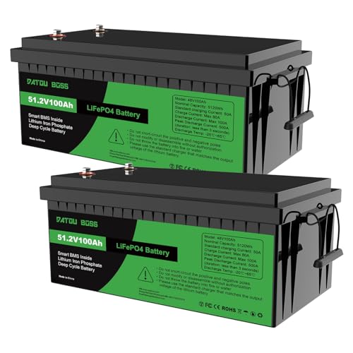DATOUBOSS 2 * 48V 100Ah LiFePO4 Litiumbatteri med 100A BMS, 4000-15000 Djupa Cykler, 5120Wh Lithium Battery, Support Parallellanslutning, för Husbil, Camping och Off-Grid-System