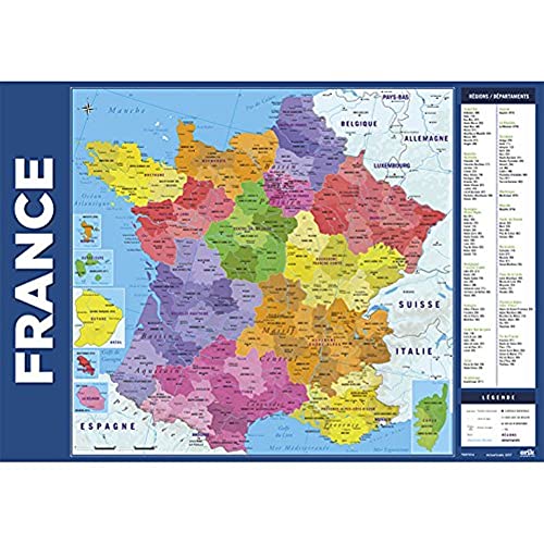 Grupo Erik Carte De France 2017 Desk Mat In French | Desk Decor | 13.5 x 19.5 inches - 34.5 x 49.5 cm | Desk Pad | Desk Protector Mat | Cute Stationery | Back To School Supplies | World Map For Kids