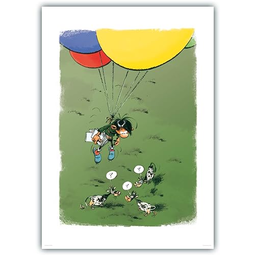 AF1607001 Väggaffisch 49 x 69 cm GASTON LAGAFFE Franquin ballonger ballong kor affisch att rama in heminredning sovrum kontor bibliotek födelsedagspresent eller pensionering kollega