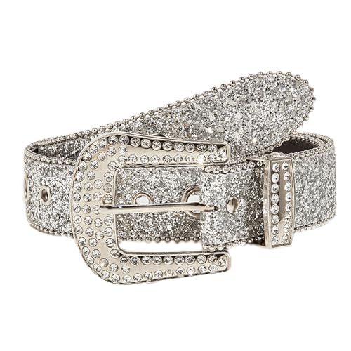 Eterspr Strass Bälte För Kvinnor, Glittrande Bälte med Strass, Dammode Strass Bälte, Lämplig för Jeans, Klänningar, Byxor, Silverton, 103 x 3.8 cm / 40.55 x 1.49 in