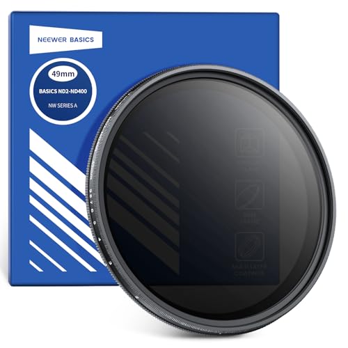 NEEWER BASICS 49 mm variabelt ND-filter, ND2-400 1-9 stopp ljusreduktion roterbart variabelt neutralt densitetsfilter med anti-fingeravtrycksbeläggning, smal ram för kameralins