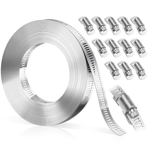 Bolatus Slangklämma 5m/16,4ft, 304 rostfritt stål, 12 justerbara slangrörklämmor, maskklämma, sortiment för rör och bränsleledning