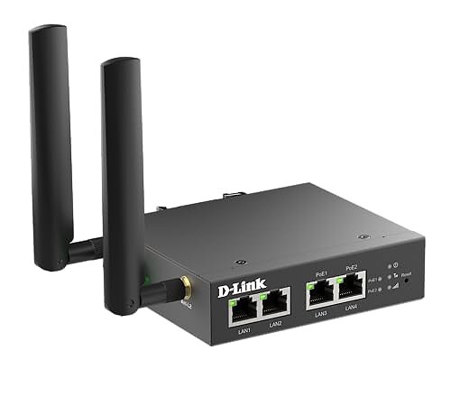 D-Link DWM-314-GP 5G M2M VPN-router med PoE, robust industriell 5G NR-router, Dubbla SIM, IoT-gateway, fjärrövervakning, SA, NSA, 4G LTE Cat 19, 4 GbE-portar, OpenVPN/WireGuard-klient, 48-57V DC