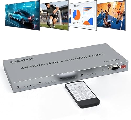 4x4 Splitter HDMI 2.0 Matrix with Audio Extractor 4K@60Hz HDR 18 Gbps HDMI 2.0 Matrix Switcher Splitter 4 in 4 in 4 out Support HDCP2.2 EDID RS232 Remote