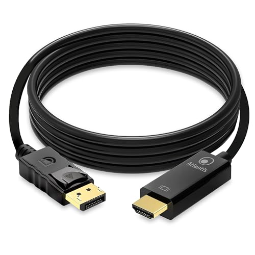 ATLANTIS A04-DP_HDMI-18 Displayport (DP) till HDMI-adapterkabel, 4K 1080p 60 Hz hane till hona ansluta PC/Notebook/MAC med Display Port till Monitor-utgång, projektor med HDMI-ingång. 1,8 m kabel.