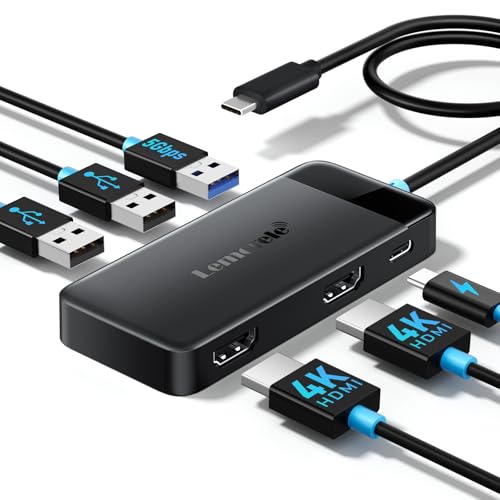 Lemorele Docking Station USB C - 6 en 1, Hub USB Dual Monitor con 2 HDMI 4K, 3 USB3.0/2.0, PD 100W,Hub USB-C/Docking Station for MacBook/Windows