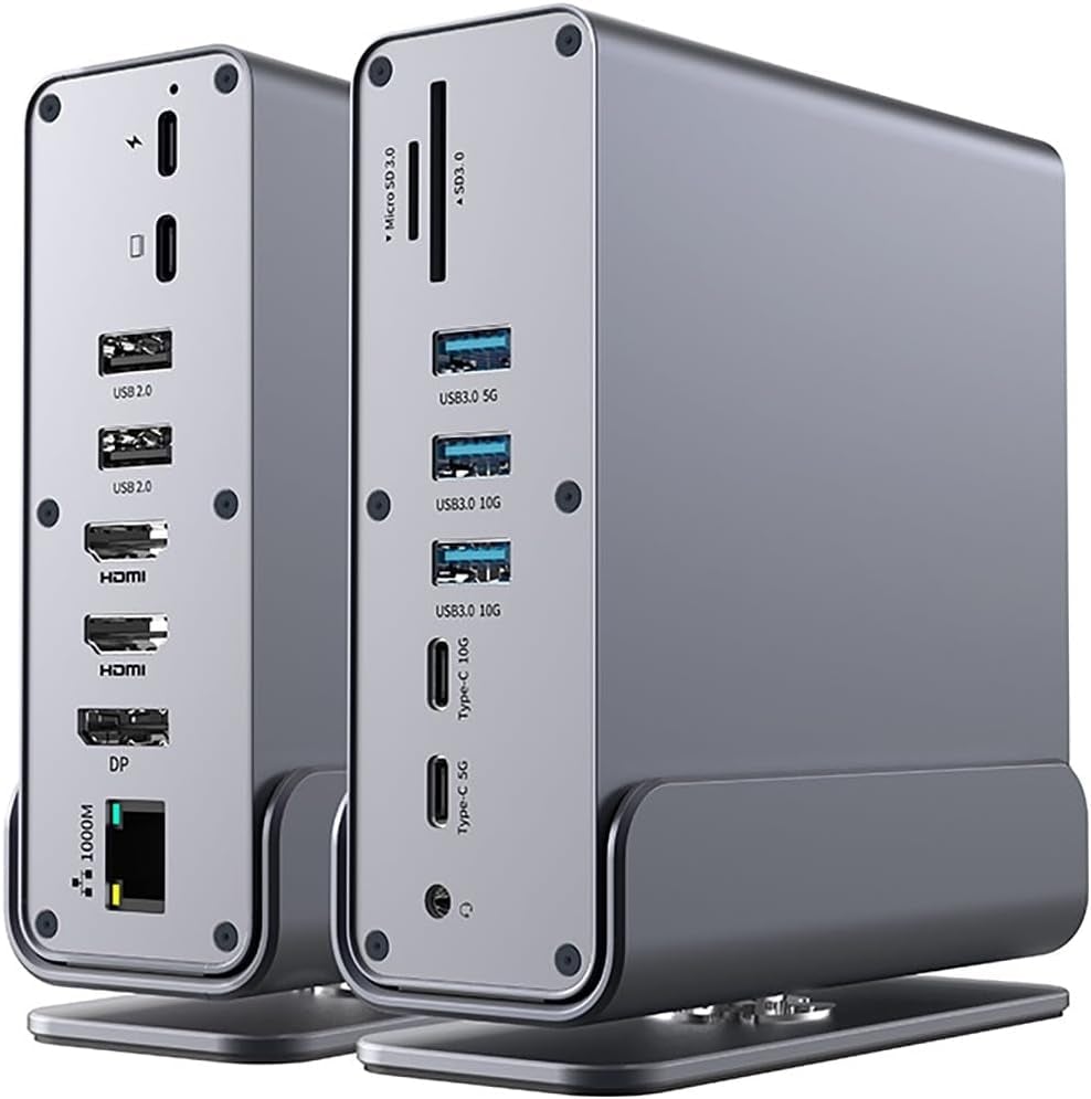 15 in 1 USB C Docking Station 4K@60Hz HDMI and DisplayPort, 3*USB 3.0, 2*USB 2.0, PD 100W Charg, 1000Mbps RJ45 Ethernet for Windows and Mac OS