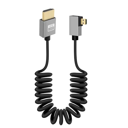 RIIEYOCA 4K Micro HDTV to HDTV Short Spiral Cable, 90 Degree Up Angle 18Gbps High Speed HDTV2.1 Support 4K@60Hz, Compatible with Camcorders, Monitors (Up)