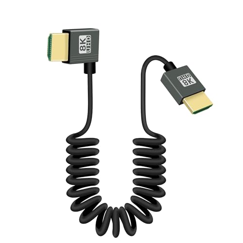 RIIEYOCA 8K 90 Degree HDTV to HDTV Coil Cable, Left Angle Card, 48Gbps High Speed HDTV2.1 Support for HDR, 8K@60Hz, 4K@120Hz, Compatible with Camcorders, Monitors (Left)