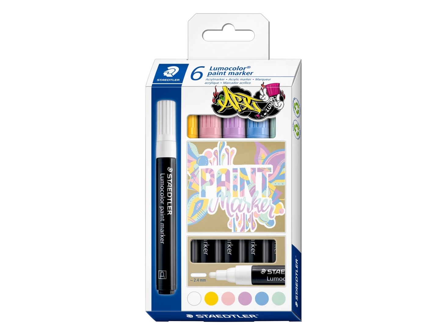 Staedtler Lumocolor 349 C6-1, Olika Färger, Multicolour, 6 Färger, Vattenbaserat Bläck, 2,4 Mm, Kartong, Keramik, Glas, Metall, Plast, Sten, Trä