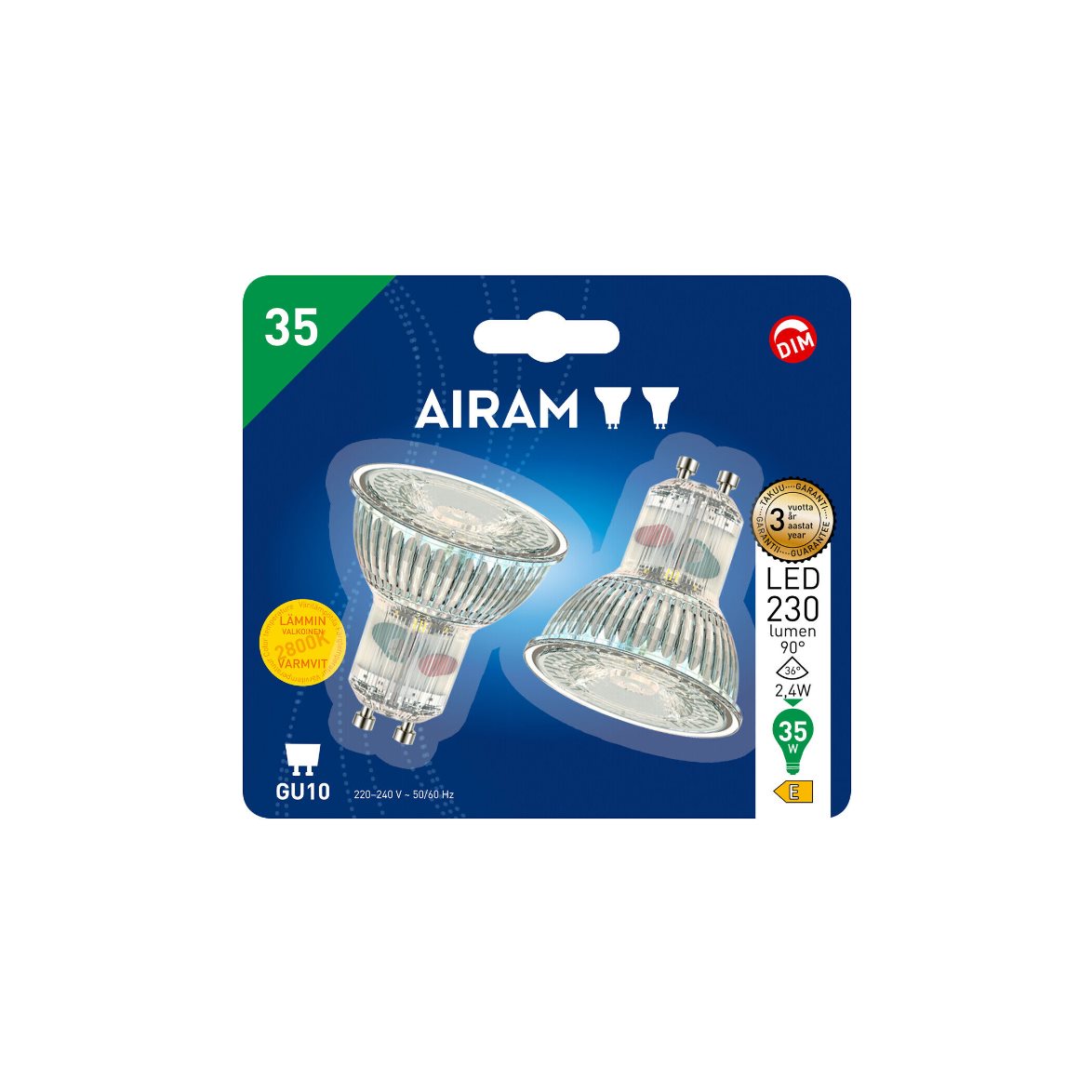 GU10, Dimbar, LED/Lysdioder, Varmvit (<4000K)
