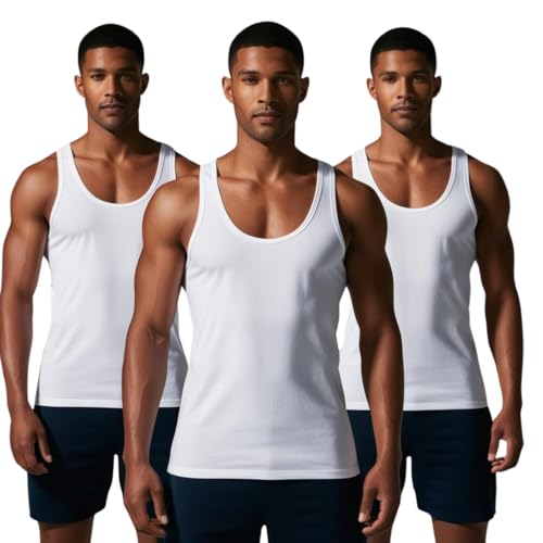 3 herr 100 % bomull linne väst ärmlös undertröja linne för gym träning toppar män västar enkel t-shirt för vardag atletiska kläder 3-pack, vit, Vitt, 4XL