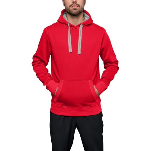 HRM Unisex huvtröja I Premium huvtröja för kvinnor och män med kontrasterande foder I Basic Hoodie Unisex I Dam- och Herrtröja I Högkvalitativa och hållbara kläder, HALLON, 4XL