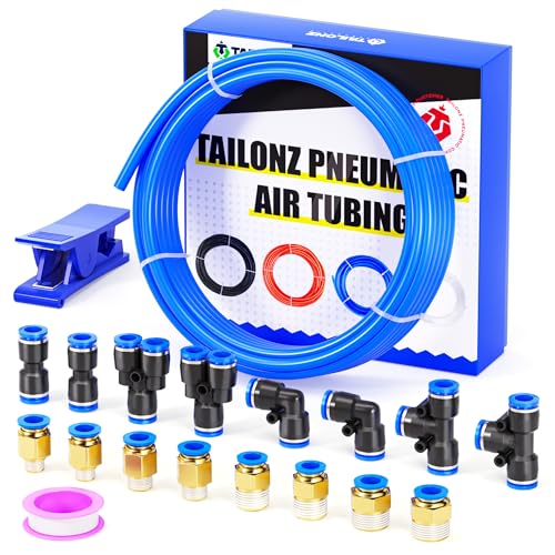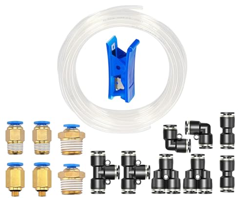 HUAZIZ 8 mm OD 5 mm ID pneumatisk luft PU rör, 10 meter luftrör polyuretan transparent 14 st svart pneumatisk koppling luftslangskoppling snabbkopplingskopplingar