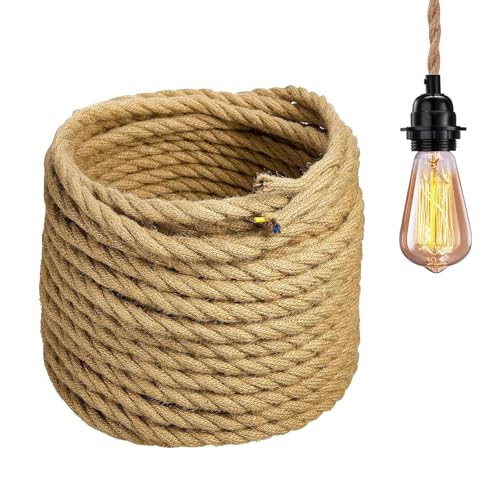 GreenSun textilkabel 3 ledare – 5 meter 3 x 0,75 mm² lampkabel vintage tygkabel retro kabel tygtäckt strömkabel med rep tygkabel jute