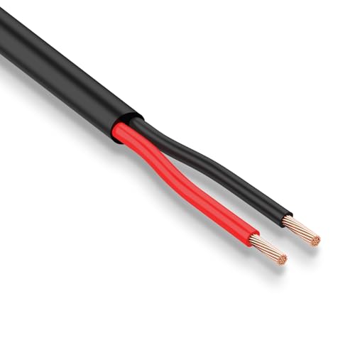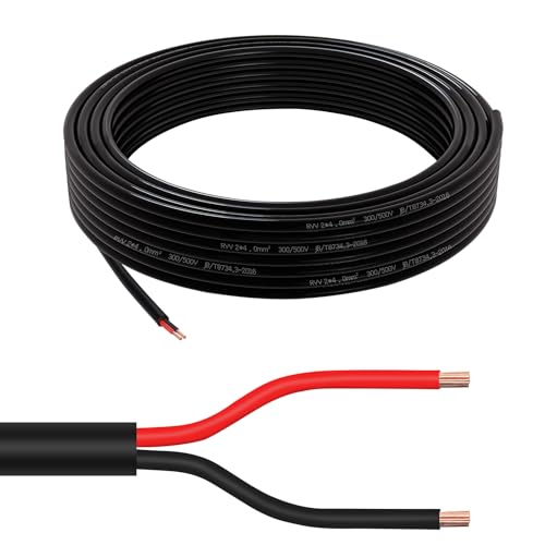 AOHEWEI 2×1.0mm² Rund Twin 2 Core Kabel 2 Ledare Koppar Elektrisk ledning 5V 12V 24V 60V, Tunnvägg Röd/Svart Bilbåtskabel 5/10/20/50 meter