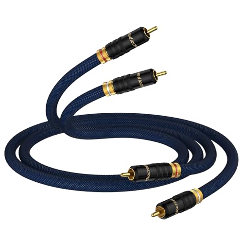 Tertullus High-End RCA-kabel 1,5 m RCA-kabel OFC silverpläterad ledare med dubbel avskärmning 2 RCA-kontakt till 2 RCA-kontakt HiFi-signalkabel för CD, förstärkare, ljud, avkodare