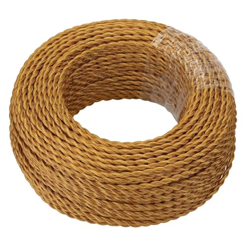 GreenSun textilkabel 2 ledare – 5 meter 2 x 0,75 mm² vintage lampkabel strömkabel 2 poler rep kabel tygkabel elkabel textilbelagd 2 kablar för ditt gör-det-själv-projekt, ljust guld