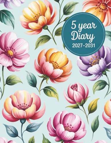 5 Year Diary 2027-2031: Month to View Planner from January 2027 to December 2031, Large Size Schedule Organiser - Flowers Cover