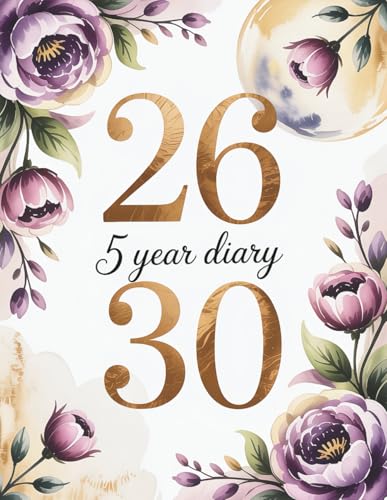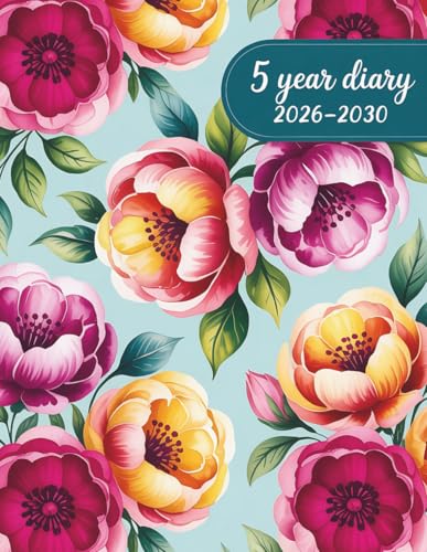 5 Year Diary 2026-2030: Month to View Planner from January 2026 to December 2030, Large Size Schedule Organiser - Flowers Cover
