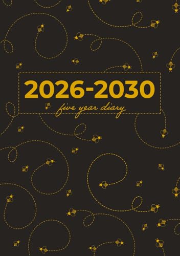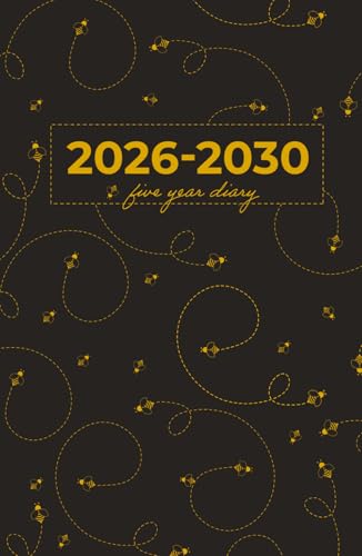 5 Year Diary 2026-2030 A5 | Cute Little Bumble Bees Buzzing on Black Hardback: Month to View Planner with UK Holidays, Vision Board, Moon Phases, ... Contacts, Passwords (Five Years)