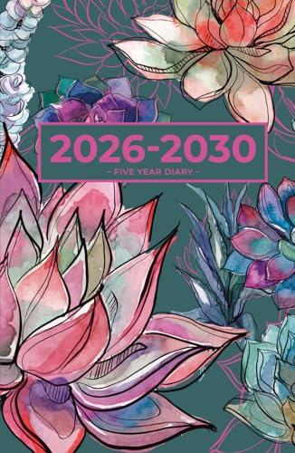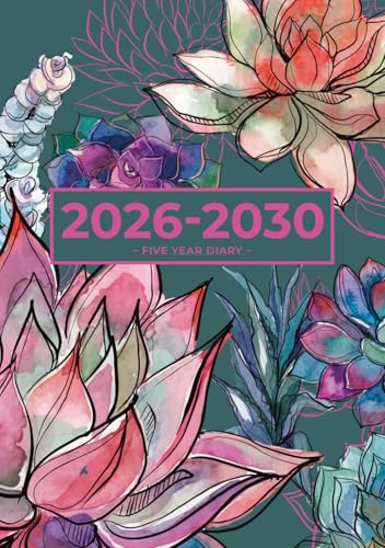 5 Year Diary 2026-2030 A5 | Gorgeous Vibrant Succulent Garden: Month to View Planner with UK Holidays, Vision Board, Moon Phases, Birthdays & Celebrations, Contacts, Passwords (Five Years)