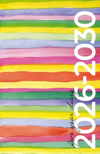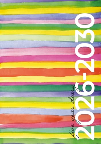 5 Year Diary 2026-2030 A5 | Modern Rainbow Watercolour: Month to View Planner with UK Holidays, Vision Board, Moon Phases, Birthdays & Celebrations, Contacts, Passwords (Five Years)