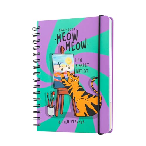 Grupo Erik A5 Academic Diary 2025-2026 Week To View - Meow Meow Cat Stationery | Back To School Planner 2025-2026 Student, A5 Mid Year Diary Week To View | Gifts For Cat Lovers