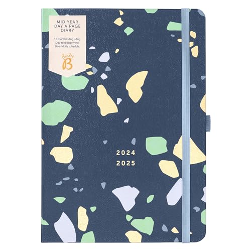 Busy B Mid Year Day a Page Diary Augusti 2024 - Augusti 2025. Terrazzo A5 daglig akademisk dag en sidplanerare med pennhållare, elastisk stängning och årsplanerare. FSC®-certifierad