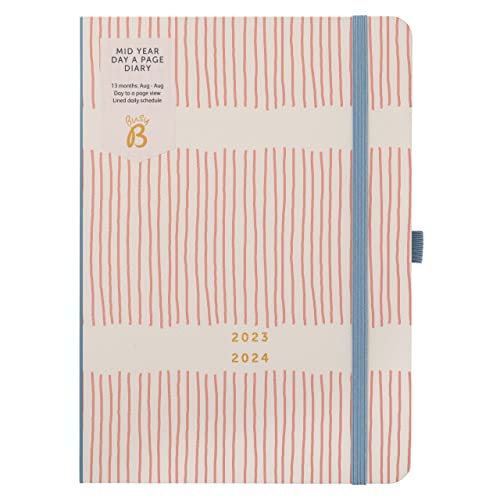 Busy B Mid Year Day a Page Diary Augusti 2023 - Augusti 2024 - Rosa rand - A5 Daglig planerare med pennhållare, elastisk stängning och årsplanerare