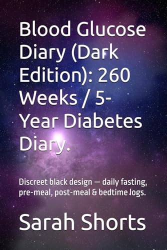 Blood Glucose Diary (Dark Edition): 260 Weeks / 5-Year Diabetes Diary for mmol/L Readings, HbA1c, Insulin, Carbs & Notes: Discreet black design — ... & bedtime logs, medication and trend reviews
