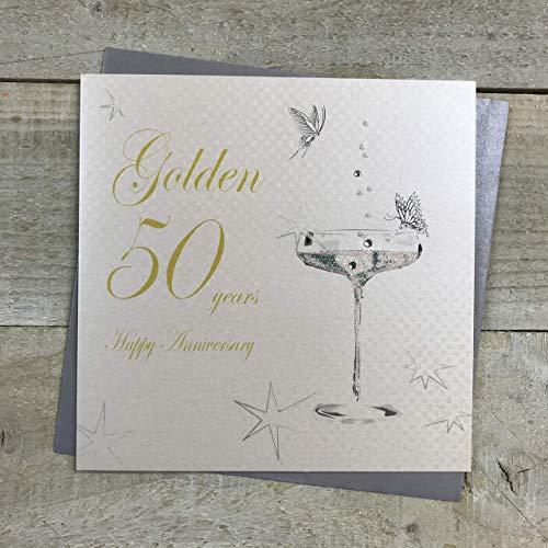 vita bomullskort Golden Happy 50 års jubileum handgjort kort, bd150c