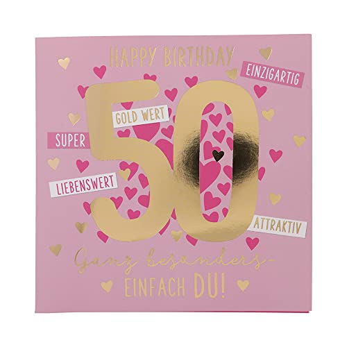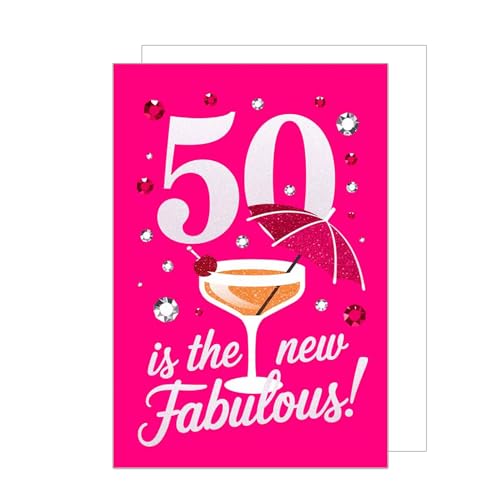 Edition Seidel Premium gratulationskort till 50-årsdagen med kuvert. Födelsedagskort grattis på födelsedagen kort för fru flickvän drink glitter rosa (GZ364-50 SW025)