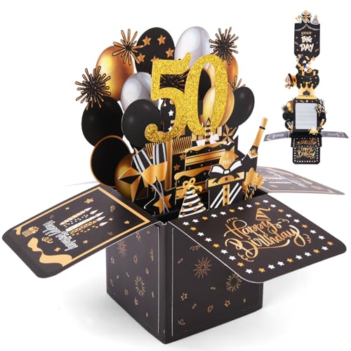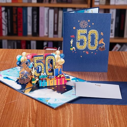 AIBAOBAO födelsedagskort 50 kvinna man popup-kort 50 födelsedag vackert födelsedagskort 3D gratulationskort med kuvert, presenter till 50-årsdagen män kvinnor för vänner, älskare och föräldrar