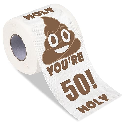 Qpout Du är 50 tryckta toalettpapper skämtgåva - grattis på 50-årsdagen rolig nyhet rulle för bästa vän, skämt överraskning badrumsdekoration