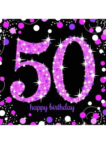 Party Deco Servetter för födelsedag – 50-årsdag – 50-årsdagen med guldskrift, 33 x 33 cm – födelsedagsdekoration pappersservetter för evenemang, födelsedagsfest, årsdag, födelsedagsfest