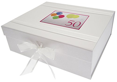 'White Cotton Cards påminnelselåda för 50-årsdagen med neon glitter luftballonger, vit, storlek L