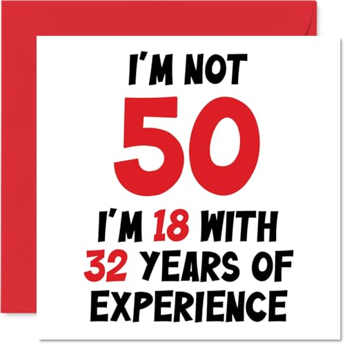 Stuff4 födelsedagskort till 50-årsdagen Födelsedag för kvinnor och män – Not 50 I'm 45 cm med 32 års erfarenhet – roligt födelsedagskort för mamma, pappa, farfar, mormor, bästa vän, 145 mm x 145 mm