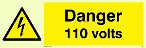 Viking Signs WE80-L15-PV"Danger 110 Volts" skylt, fotoluminescerande klistermärke, 50 mm H x 150 mm B