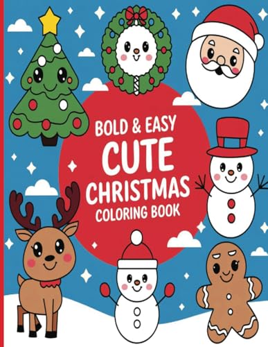 Coloring Book: Bold and Easy Cute Christmas perfect for kids, teens, adults or anyone who enjoys the Christmas season: 50 Fun & Festive Designs from ... ornaments there's something for everyone!