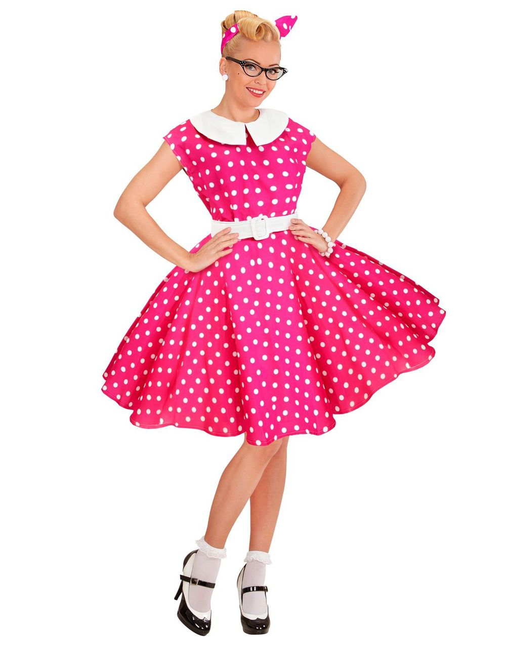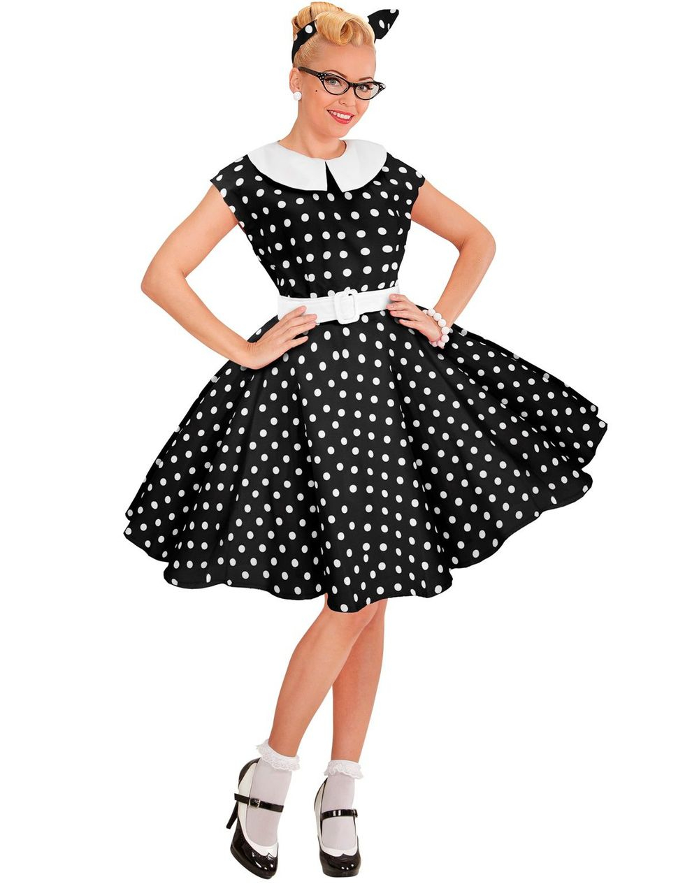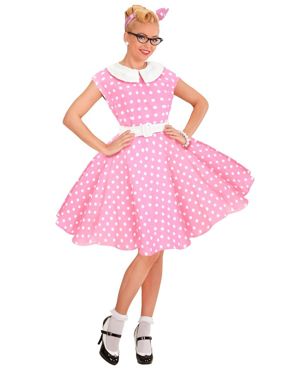 W WIDMANN MILANO Party Fashion – Kostym rock'n'roll, 50-tals mode, klänning med underkjol, bälte, hårband, karnevalkostymer